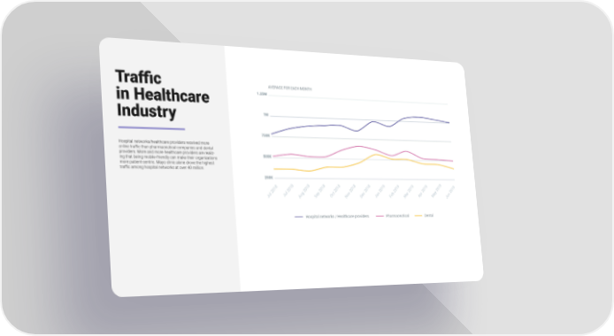 Traffic in Healthcare Industry Hospital networks/healthcare providers received more online traffic than pharmaceutical companies and dental providers. More and more healthcare providers are realiz- ing that being mobile-friendly can make their organizations more patient-centric. Mayo clinic alone drove the highest traffic among hospital networks at over 40 million.
