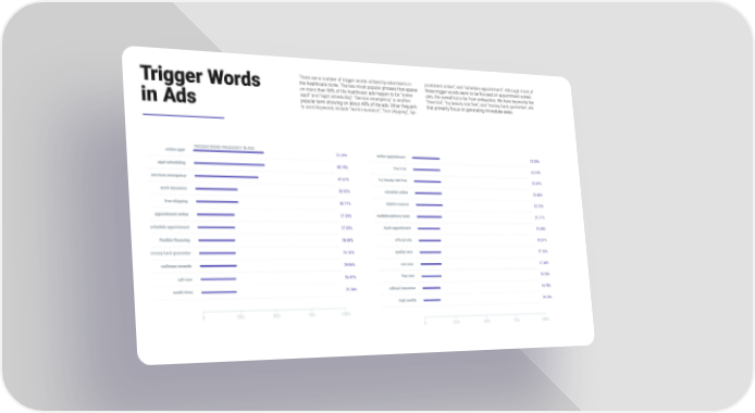 There are a number of trigger words utilized by advertisers in pointment online”, and “schedule appointment”. Although most of Trigger Words the healthcare niche. The two most popular phrases that appear these trigger words seem to be focused on appointment sched- on more than 50% of the healthcare ads happen to be “online ules, the overall list is far from exhaustive. We have keywords like appt” and “appt scheduling”. “Service emergency” is another “free trial”, “try beauty risk free”, and “money back guarantee”, etc. popular term showing on about 48% of the ads. Other frequent- that primarily focus on generating immediate sales. in Ads ly used keywords include “work insurance”, “free shipping”, “ap-